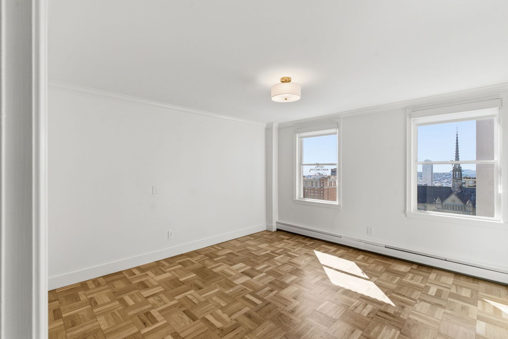 Located in a prestigious Nob Hill high-rise, this residence includes valet parking for one vehicle, 24-hour security, and on-site management. Parking is included in the rent.