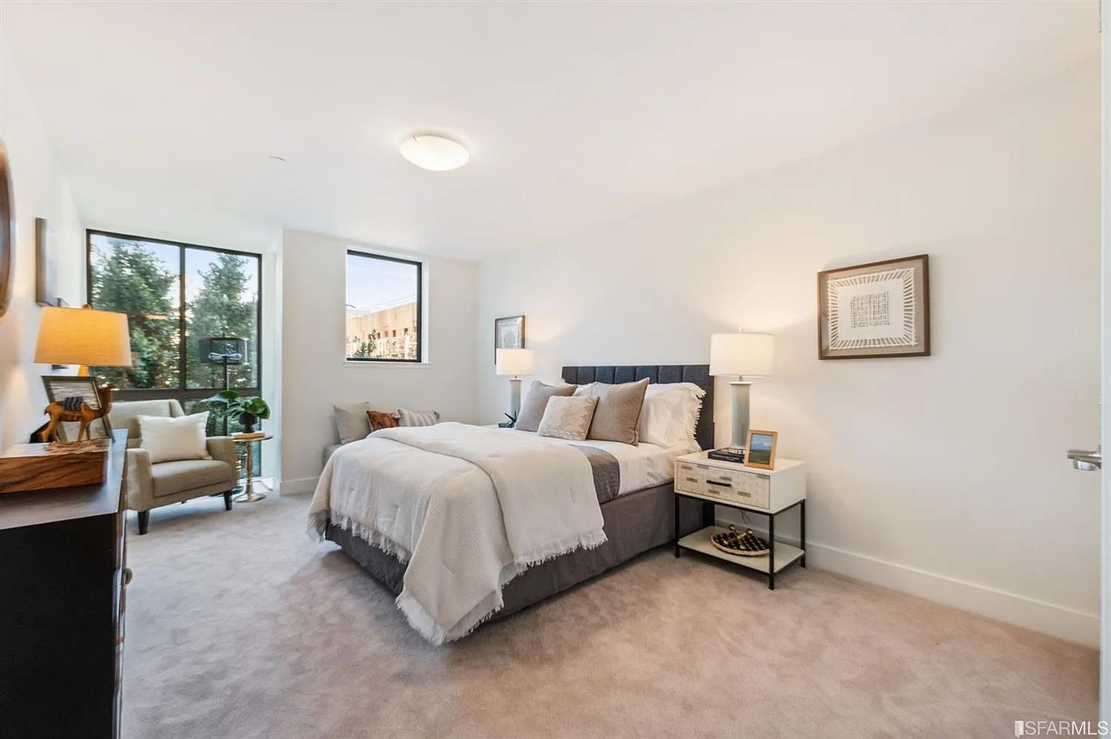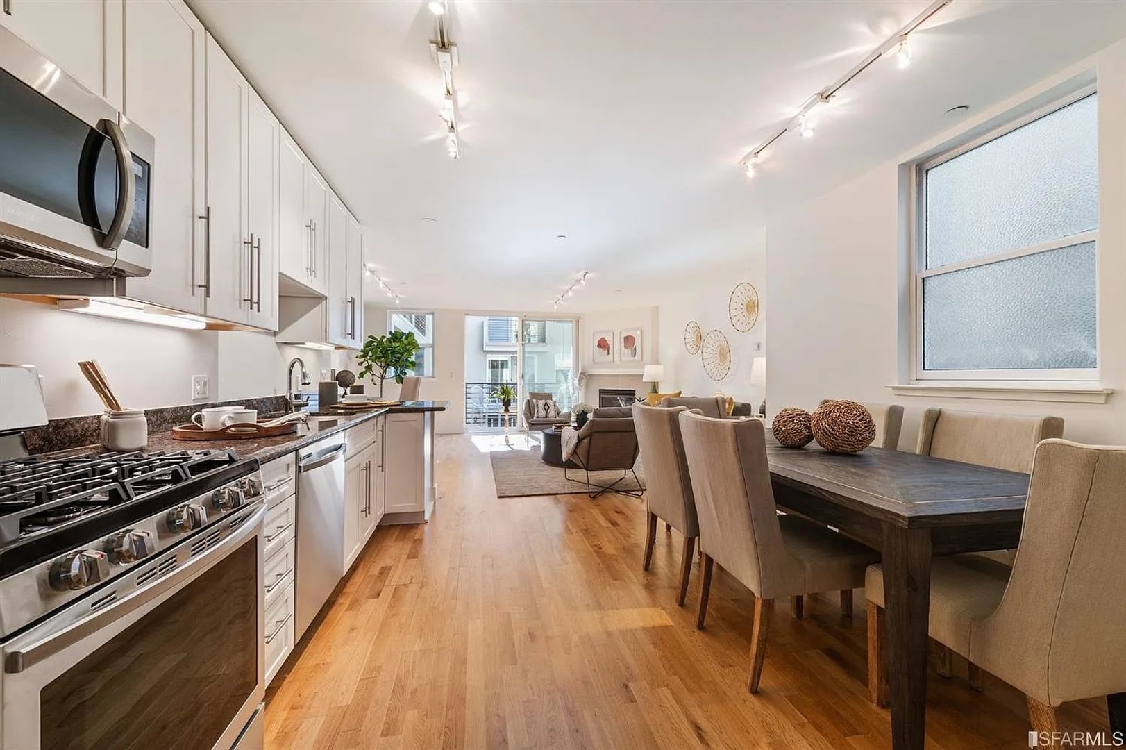 Expansive and updated two bed, two bath condominium in a boutique 17 unit building conveniently located near public transportation and freeways. Each bedroom is generously sized with ample closets and ensuite bathroom in the primary. The open floor plan invites a combination of uses with space for office-area, formal dining and media area. Stainless steel appliances, decorative fireplace, in-unit laundry, balcony and garage parking complete this beautiful unit.