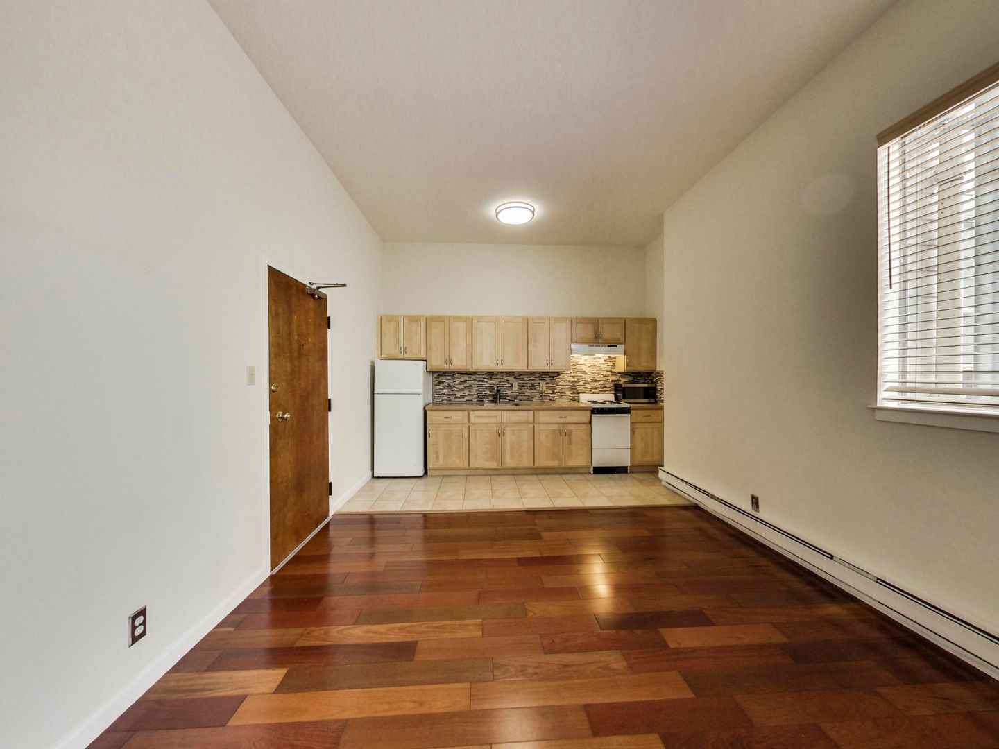 Modern, updated junior one-bedroom unit available in an amazing location! Spacious unit with white appliances. The living area boasts hardwood flooring, high ceilings and bright lighting, and a large bedroom with ample closet space completes the unit. There's a sliding door that opens up the floor plan. The building offers a shared backyard and laundry facilities, and the resident manager lives onsite.