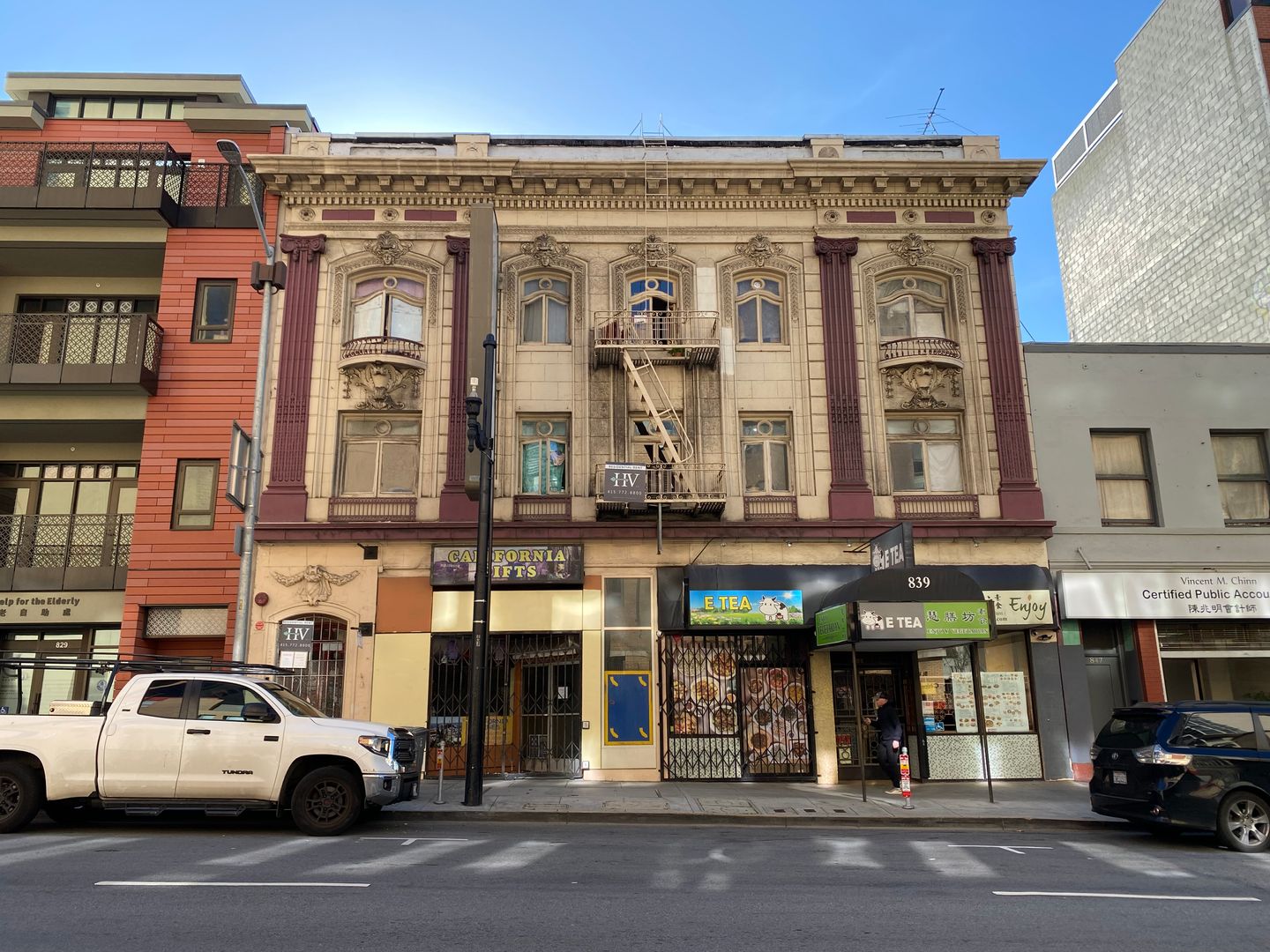 833 Kearny Street is an SRO (single room occupancy) property located in San Francisco Chinatown near the Financial District and North Beach neighborhoods. CCSF Chinatown/North Beach Center is located across the street. Nearby parks include Portsmouth Square, Jackson Square Historic District and Willie "Woo Woo" Wong Park.