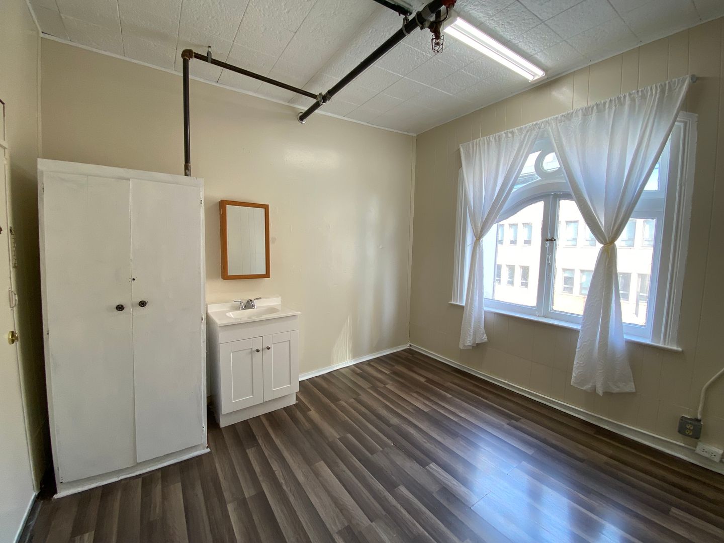 Unit #26 is a street-facing private room located on the top floor of the building with a sink and closet inside.