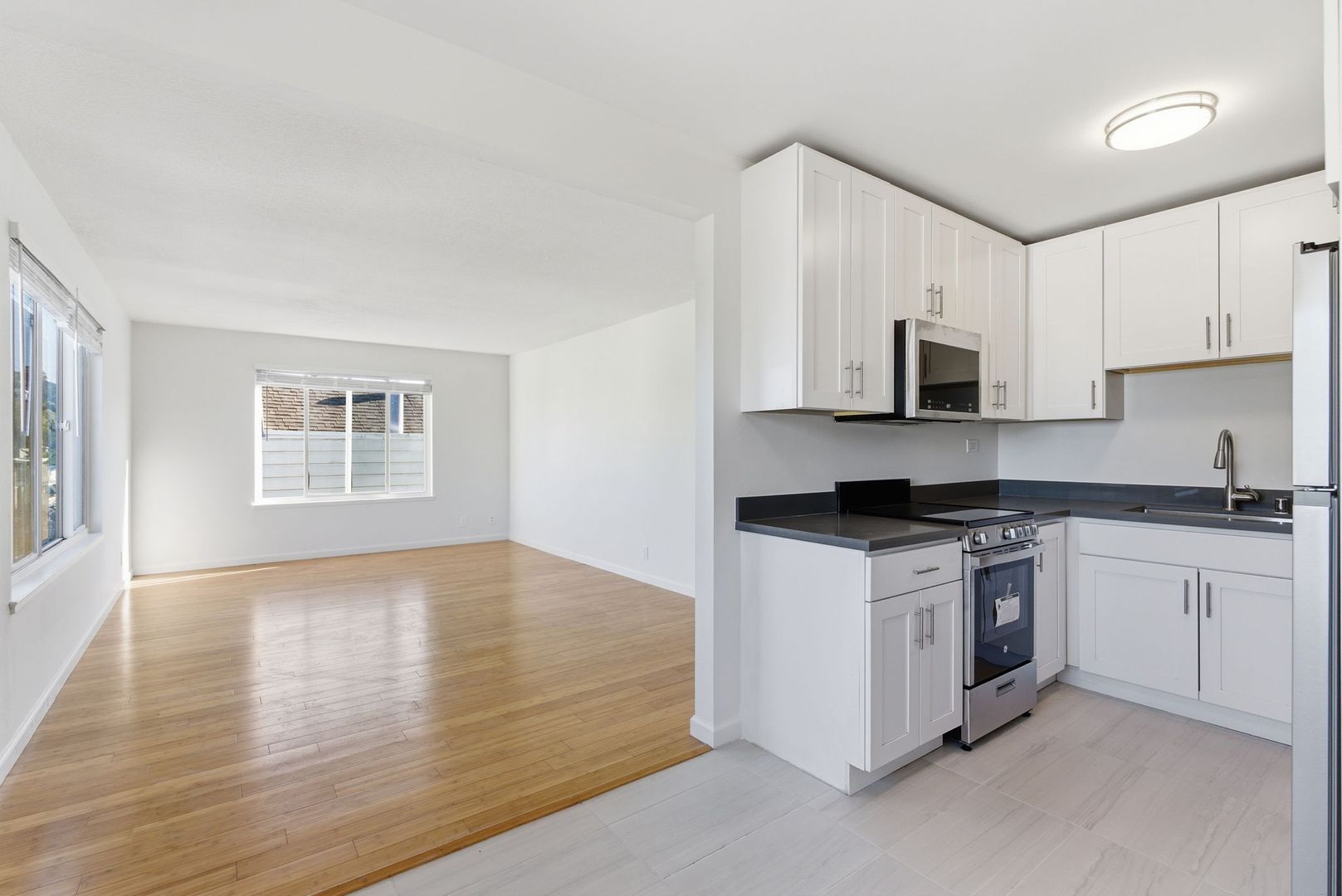This top floor 1-bedroom apartment in the Castro offers an updated and spacious living space with abundant natural light. The apartment also includes an updated kitchen with stainless steel appliances, an adjacent dining nook, an updated bathroom, a bedroom with a double-door closet, and additional storage in the entry area. There is even an in-unit washer and dryer for added convenience.