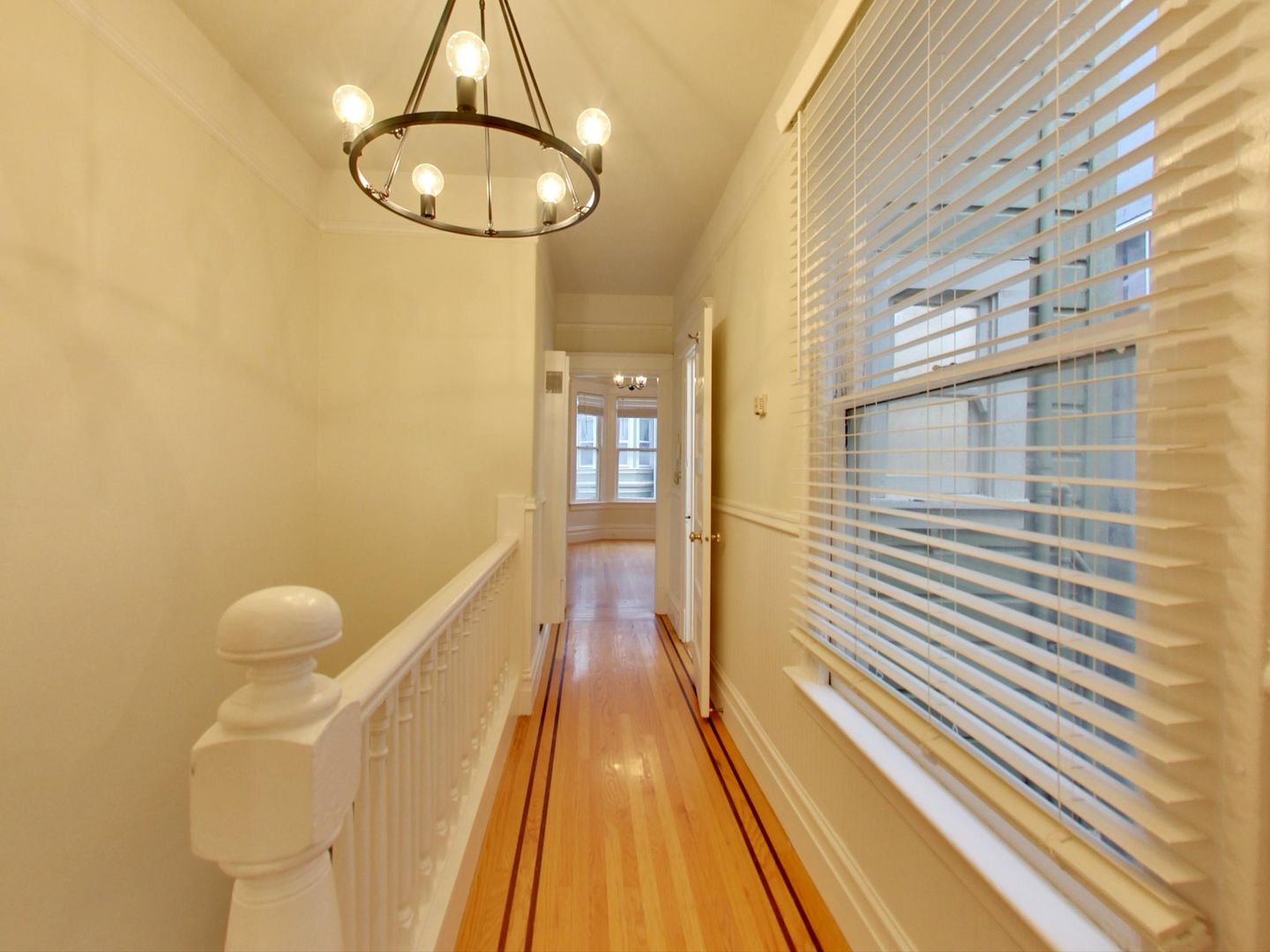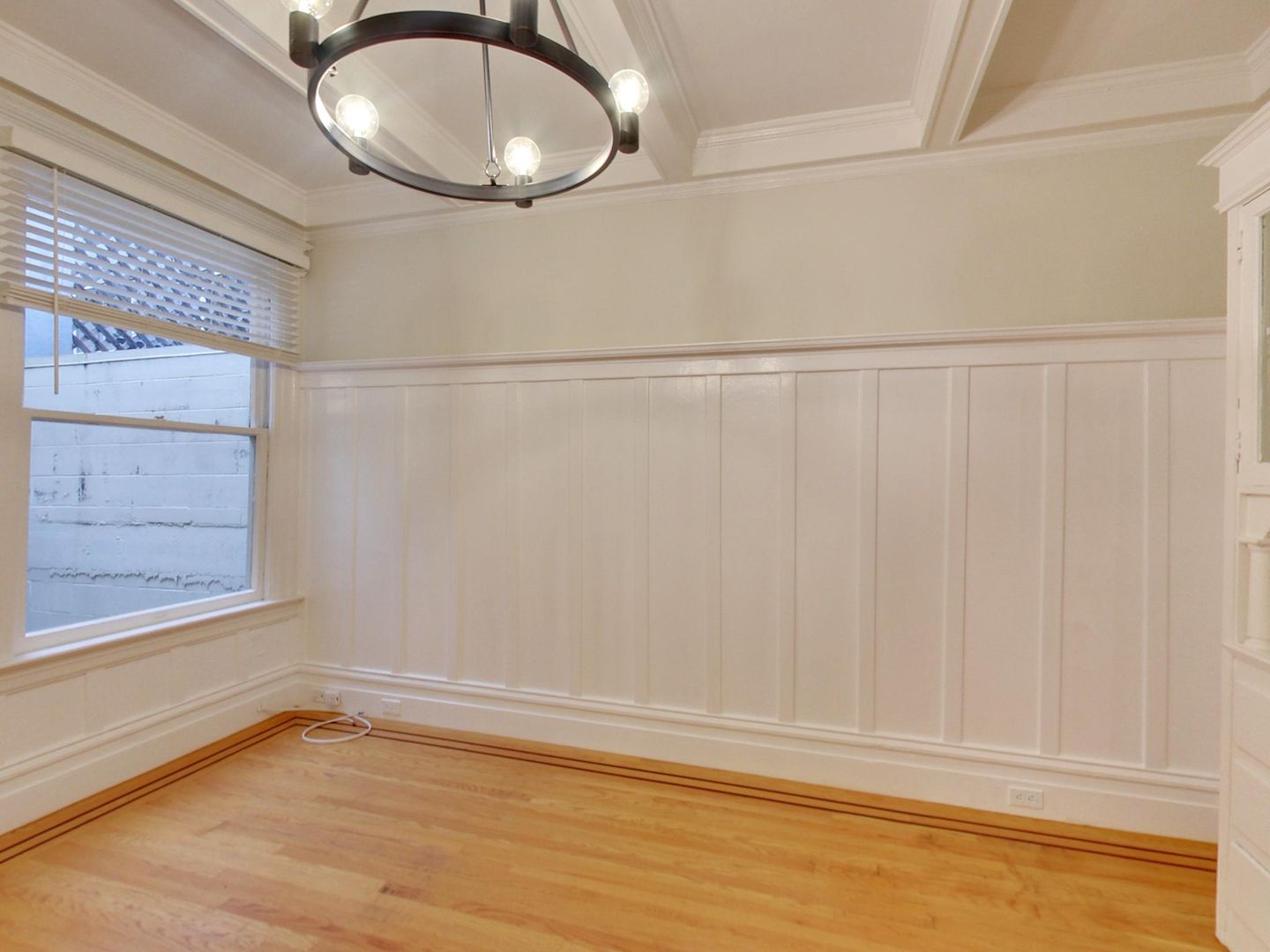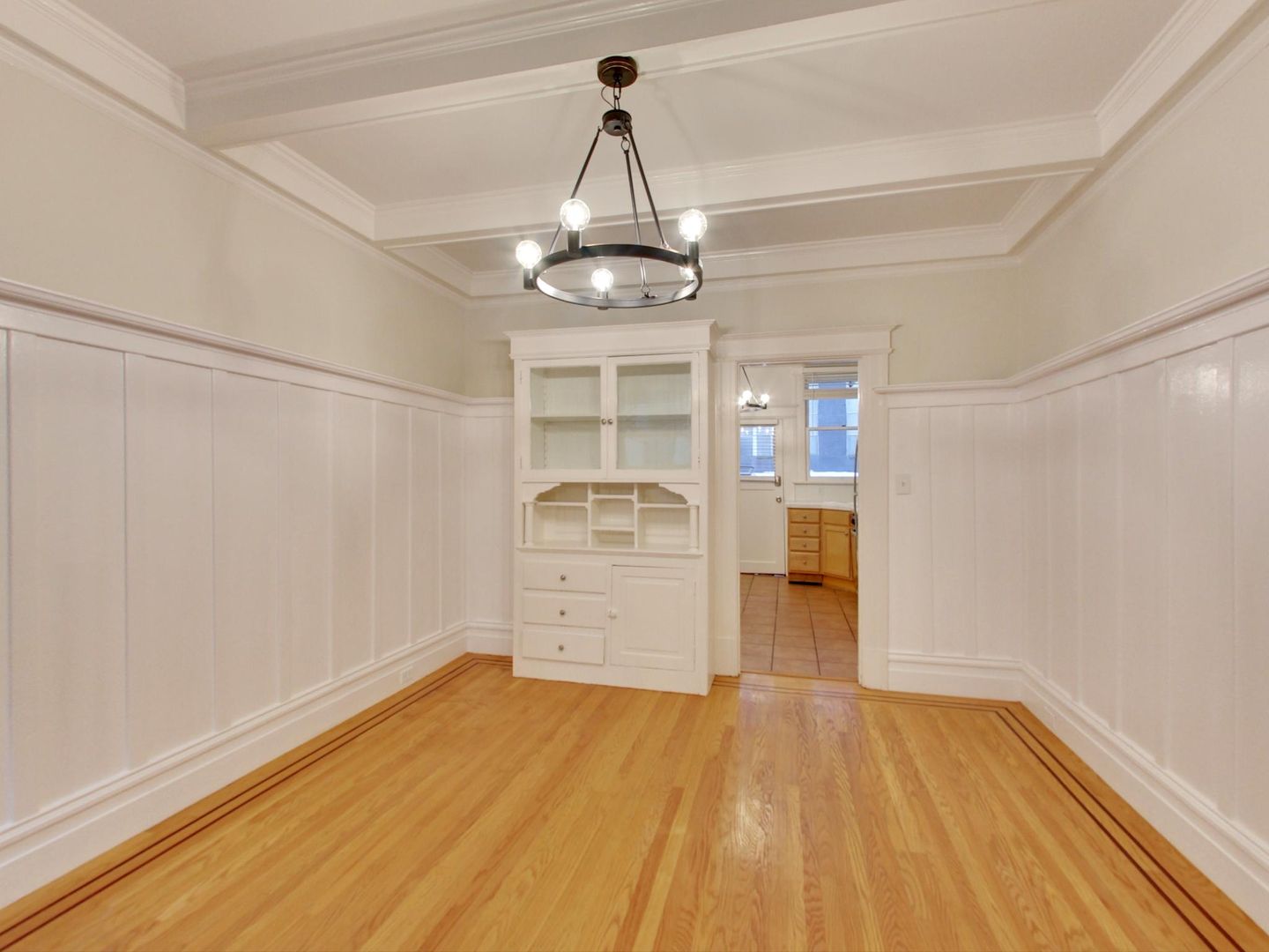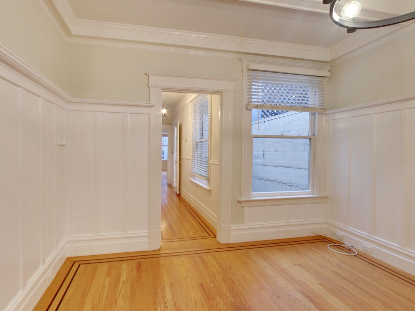 This beautiful, upstairs one-bedroom apartment features classic San Francisco finishes and original hardwood flooring throughout the living space. With a window in every room, highlighted by the large bay window in the bedroom, natural light shines throughout the unit. Built-in shelving and wainscoting around the living room deliver both charm and function, while tall ceilings throughout make the entire unit feel more spacious.