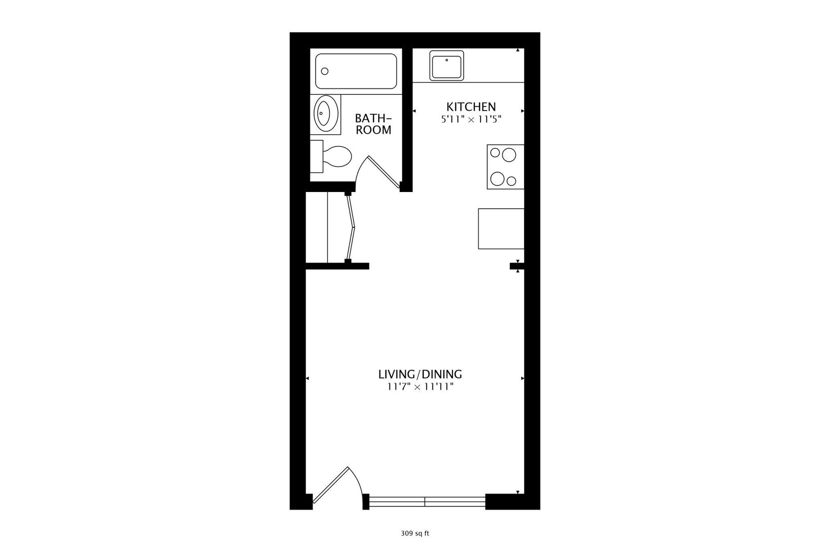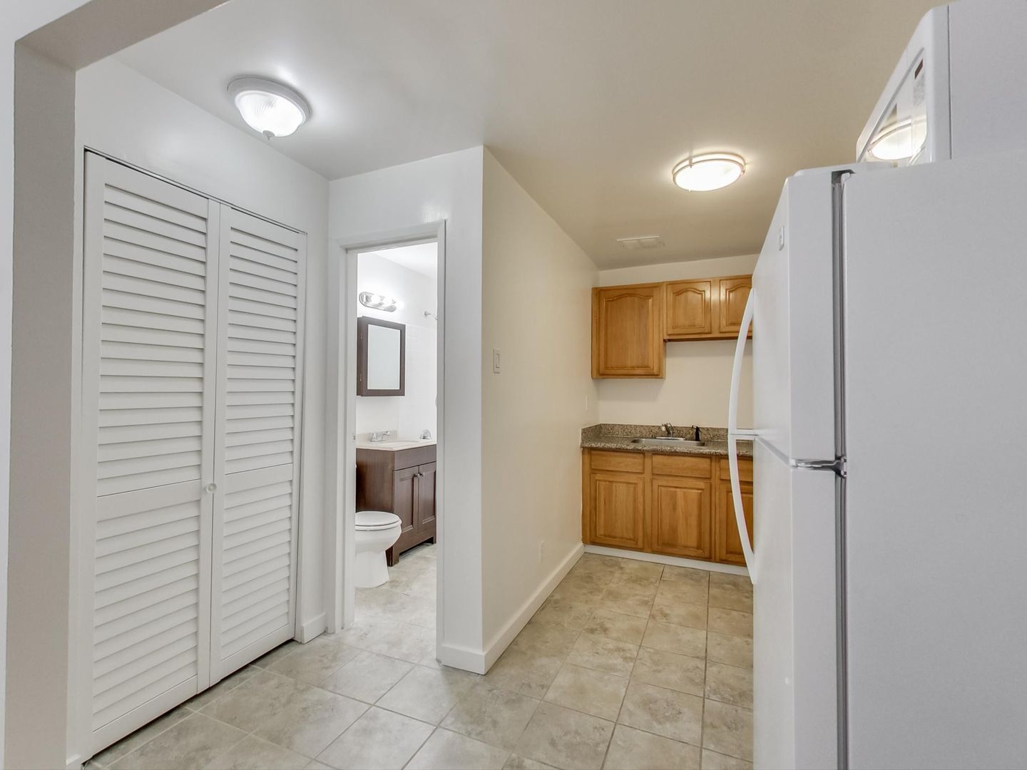 This top floor studio apartment is available now! Situated in the 16 unit, 2 story building, this unit is on the top floor in an ideal location. The studio is spacious and features laminate hardwood flooring throughout. The kitchen offers an electric range stove/oven and refrigerator and the bathroom includes a tub/shower combination with plenty of under the sink storage. In the main living space, you can fit a queen sized bed with other furnishings to make this a cozy oasis close to many popular bars, restaurants, and grocery options!