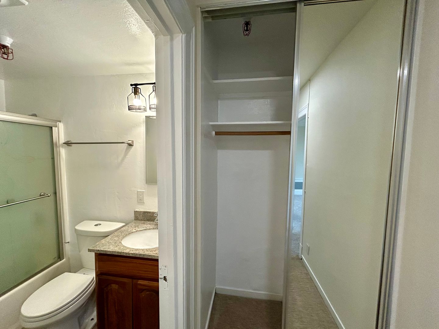 The bathroom is clean and contemporary, offering a full shower/tub combination and functional storage. Additional highlights include generous closet space and a layout that maximizes every square foot.