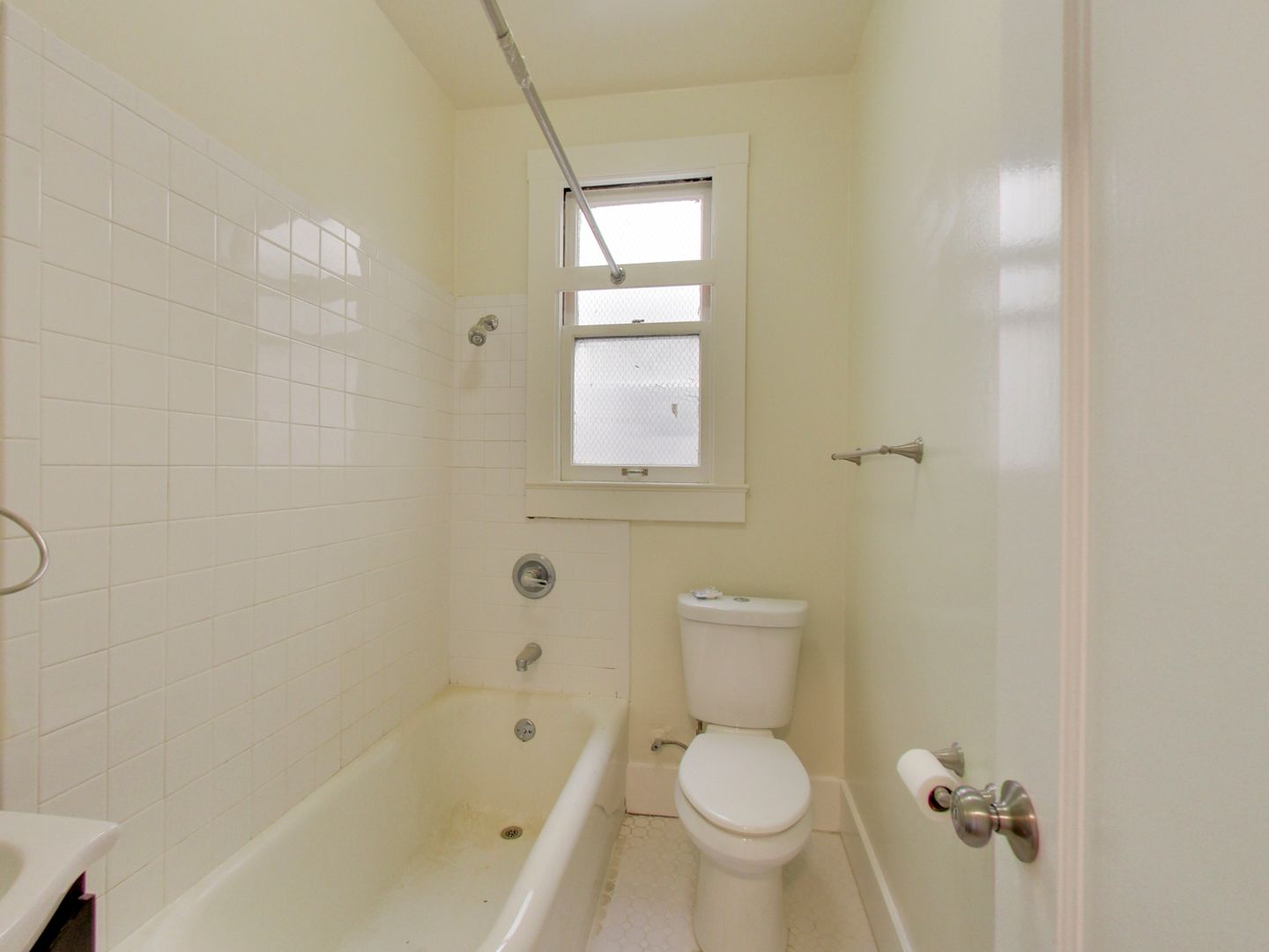 - Classic Bathroom: The bathroom features a bathtub/shower combination, as well as a modern vanity with storage underneath. The chic tile floor design is likely to be appealing to residents.